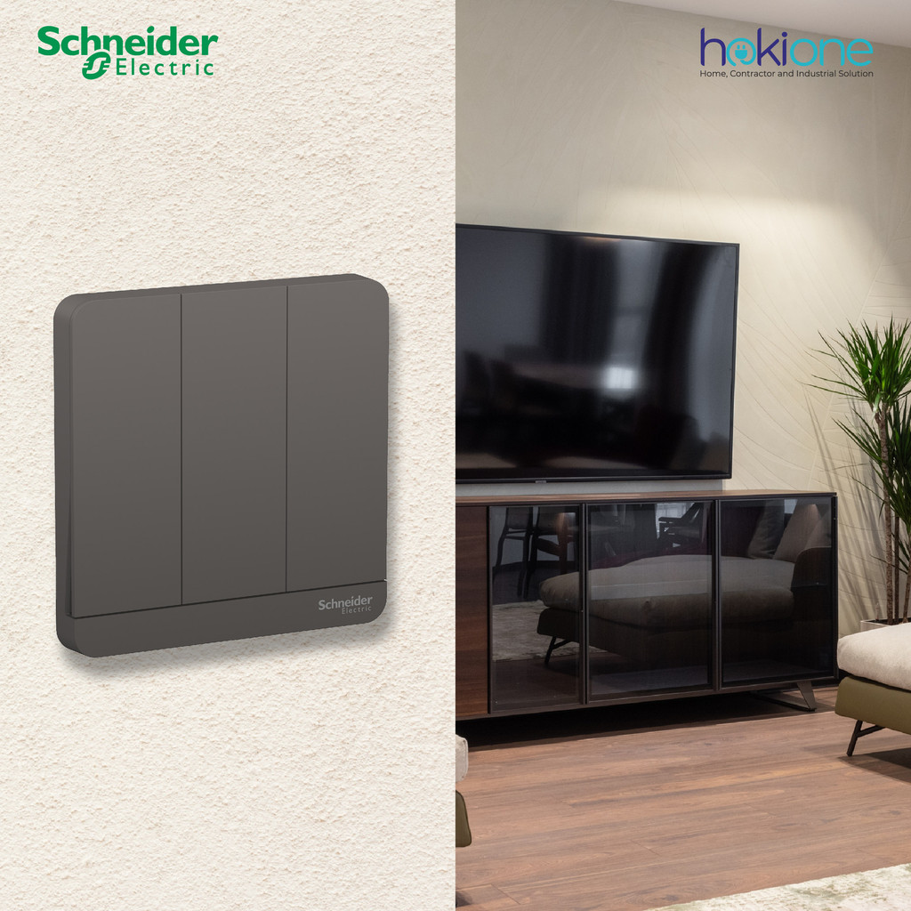 Schneider AvatarOn Saklar Lampu 3 Gang 2 Arah Dark Grey - E8333L2LED_DG_G3