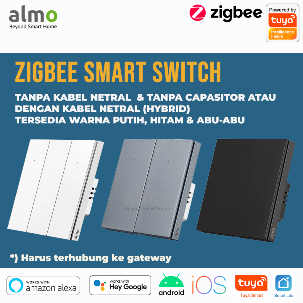ALMO Tuya Zigbee Smart Wall Switch Saklar Pintar Home Automation IoT Tanpa Kabel Netral Tanpa Kapasitor