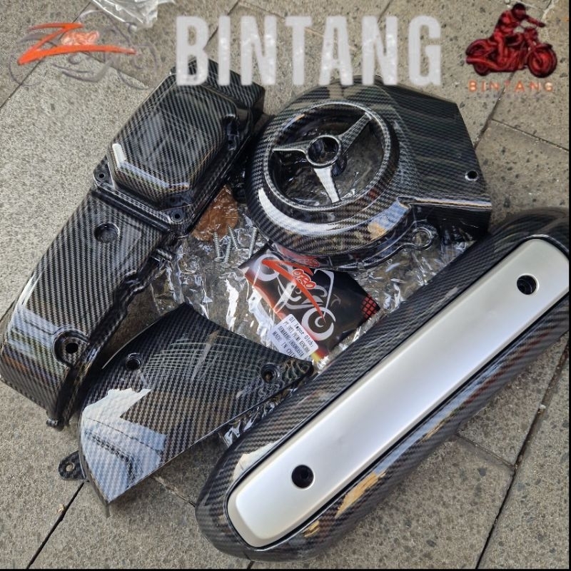 Paket Cover Carbon 3 Item Mio Sporty/Mio Smile Cover Kipas Tameng Knalpot Cvt Carbon Zoro Import