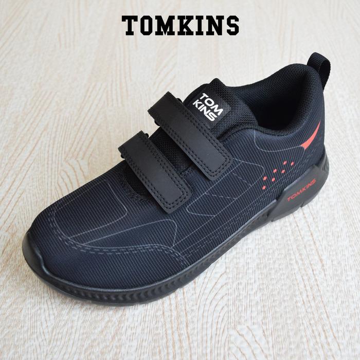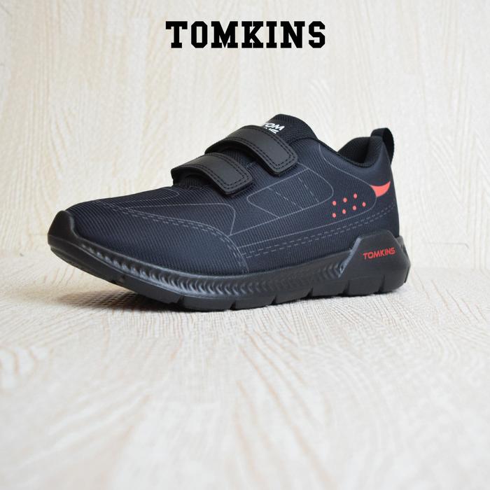 TOMKINS SHENIGAN - HITAM MERAH SEPATU SEKOLAH ANAK TK SD - UKURAN 33