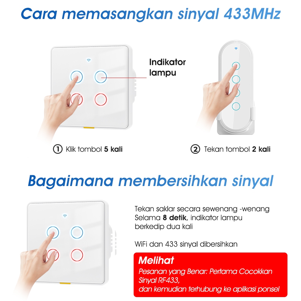 SMATRUL SMART WALL SWITCH EU 1/2/3/4 GANG WHITE/BLACK WIFI+RF433 Touch Wall Switch Saklar Sakelar Pintar