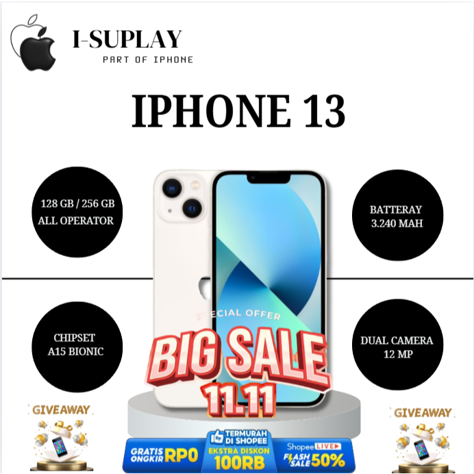IP 13 128GB 256GB Full Set Second Inter Mulus 100 PERSEN Original
