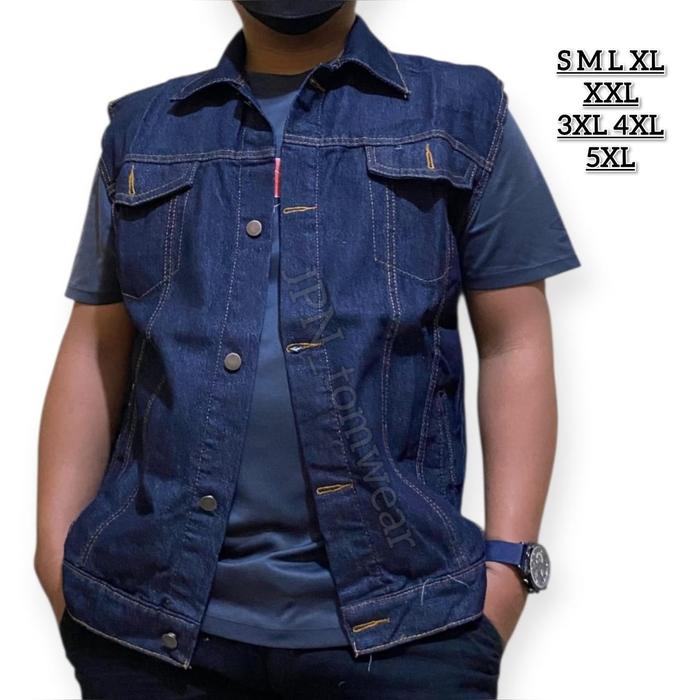 Rompi Jeans Jumbo Pria Vest Denim Jaket Bigsize Dark Garmen Casual S M L XL XXL XXXL XXXXL XXXXXL - Hitam S