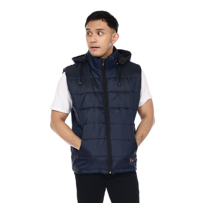 Rompi Parasut Pria Vest Motor | Rompi puffer Polos Anti Angin | Rompi Parasut Kasual Kerah Tinggi Keren Hitam - navy M