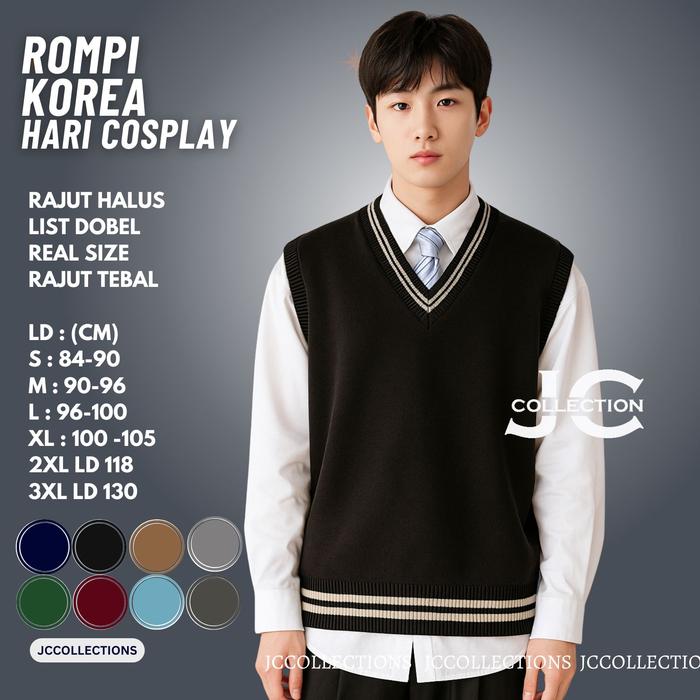 Rompi Pria Rajut Korean Look Vneck List Putih Hery / Vest Korea List Herry.potters Sweater Rompi - Hitam S
