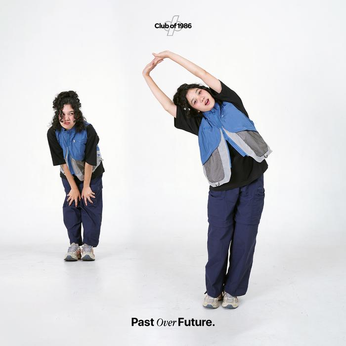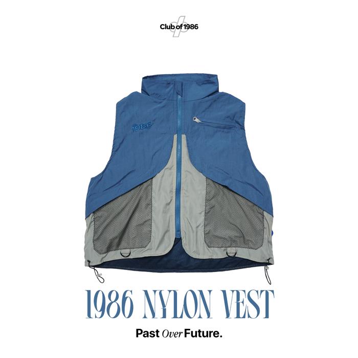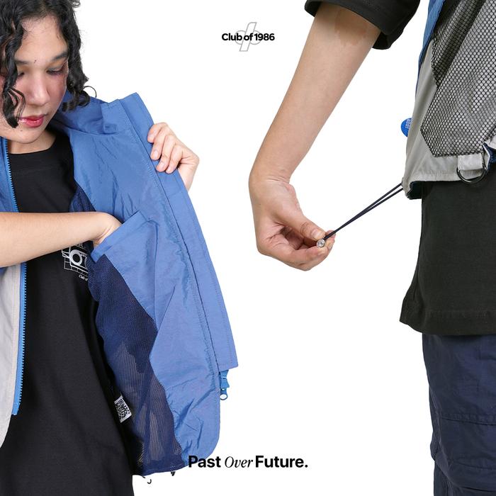 1986 Nylon Reversible Zip Vest Blue and Grey - Rompi Biru / Abu Polyester Dual Resleting - M