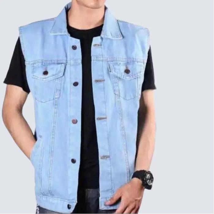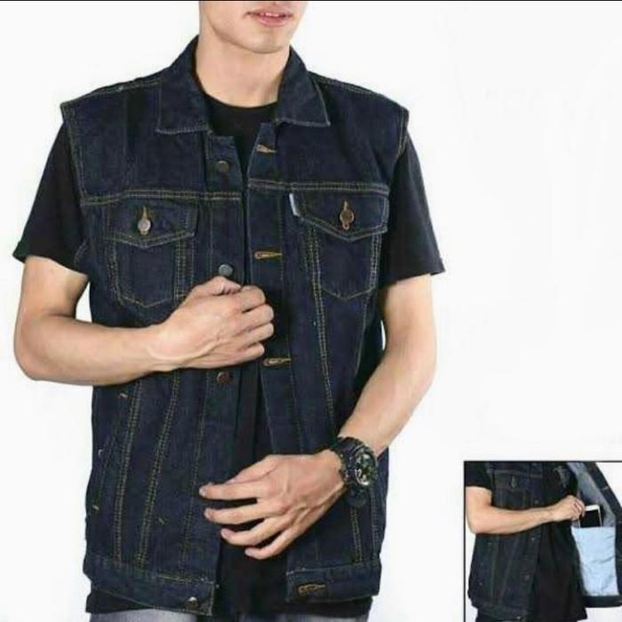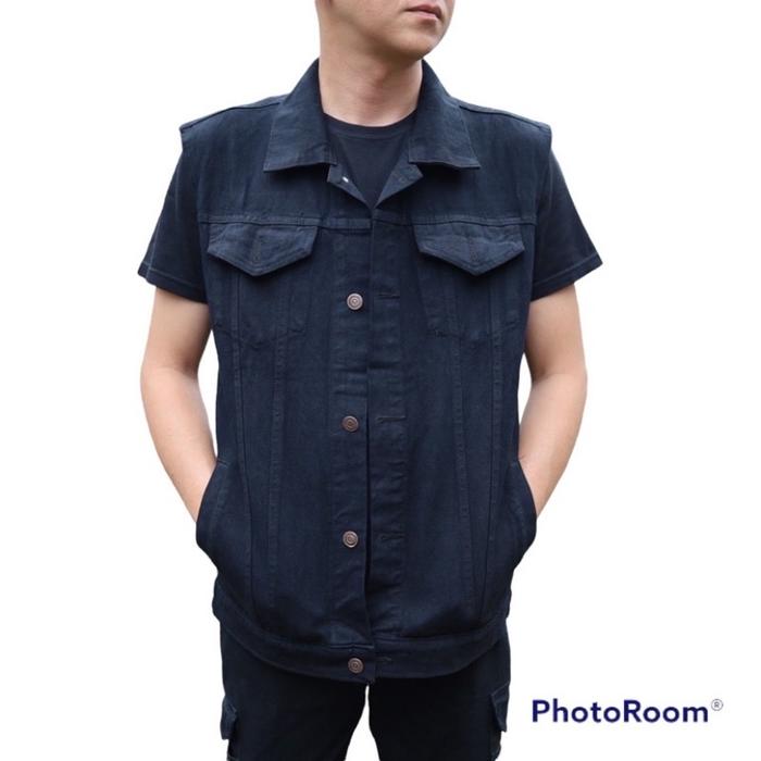 Jaket Rompi Jeans Polos Santai hitam pria tebal - Hitam M