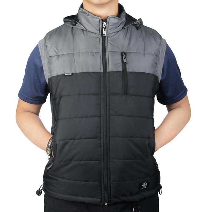 DENZEL Jaket Rompi Casual Pria DZ 034 ABU HITAM - Grey Kombinasi M