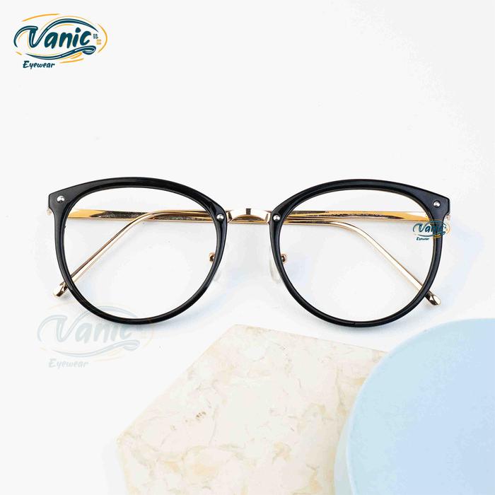 Kacamata Wanita Oval Korea Look Frame Bulat Lensa Photocromic VNC221 - Black Gold Lensa Normal