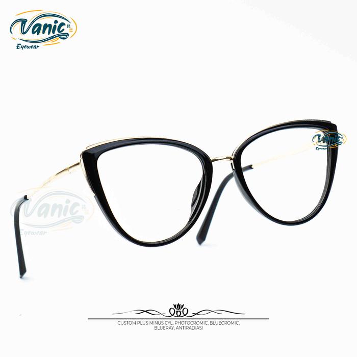 Vanic Kacamata Cat Eye Fashion Wanita Lensa Photocromic Antiradiasi VNC3002 - Hitam Gold Lensa Normal