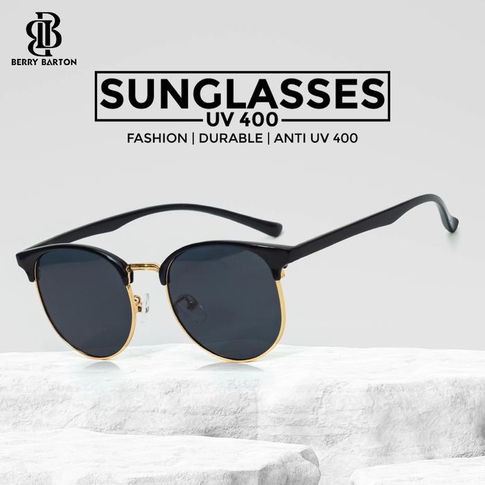 Kacamata Hitam Sunglasses Anti UV Pria Wanita Berrybarton 6214 S - Black Gold C1