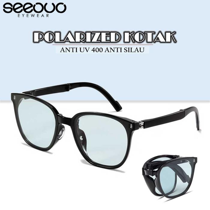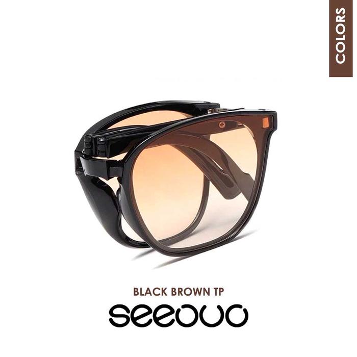Seeouo Kacamata Lipat Sunglasses Polarized Bentuk Kotak Anti UV 400 Protection Unisex CD007 - BLACK BROWN TP
