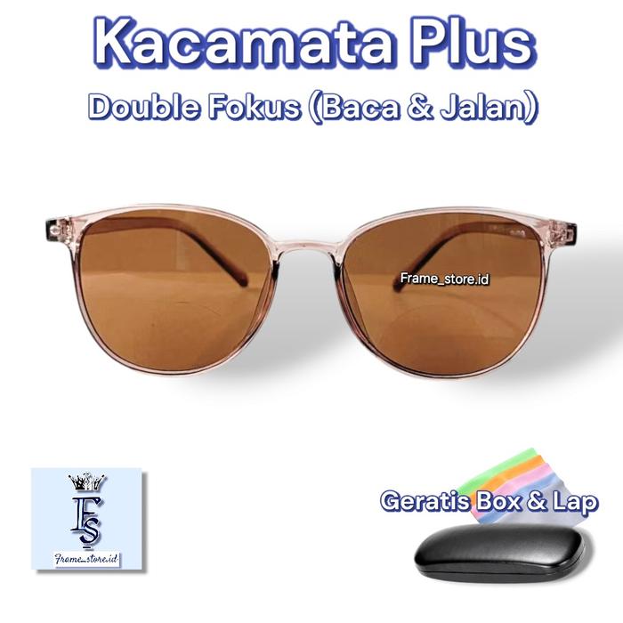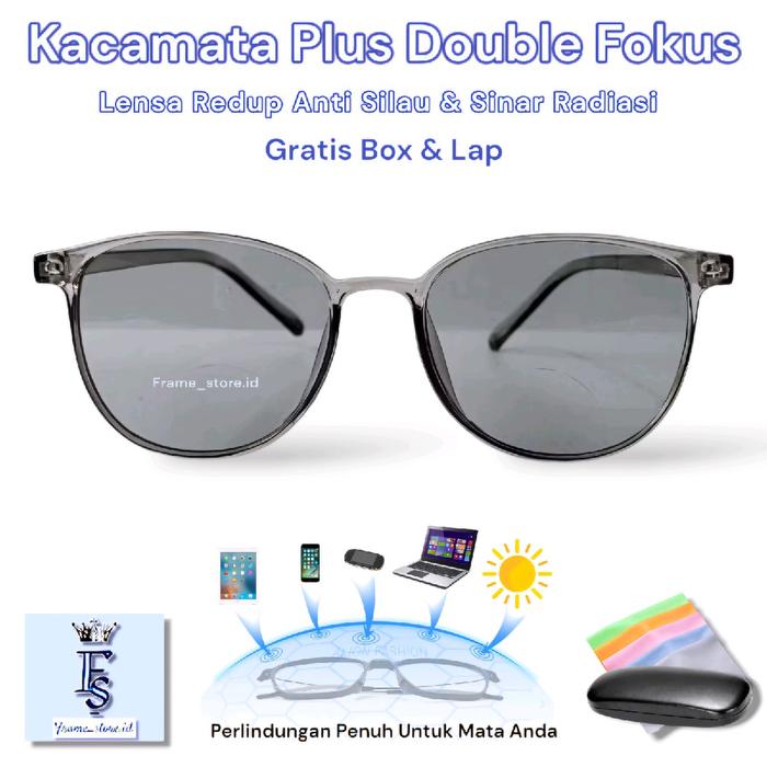 Kacamata Double Fokus Plus Lensa Anti Radiasi untuk Baca dan Jalan Unisex Frame Pria dan Wanita Abu-Abu - Grey +1.00