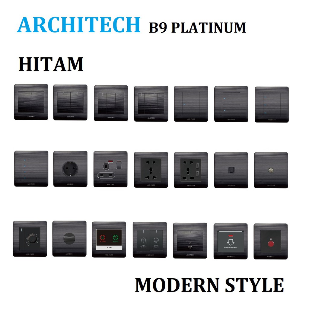 Architech Saklar Platinum Black B9 Architech / Stop Kontak / Sakelar / Saklar Rumah Gabungan saklar warna hitam