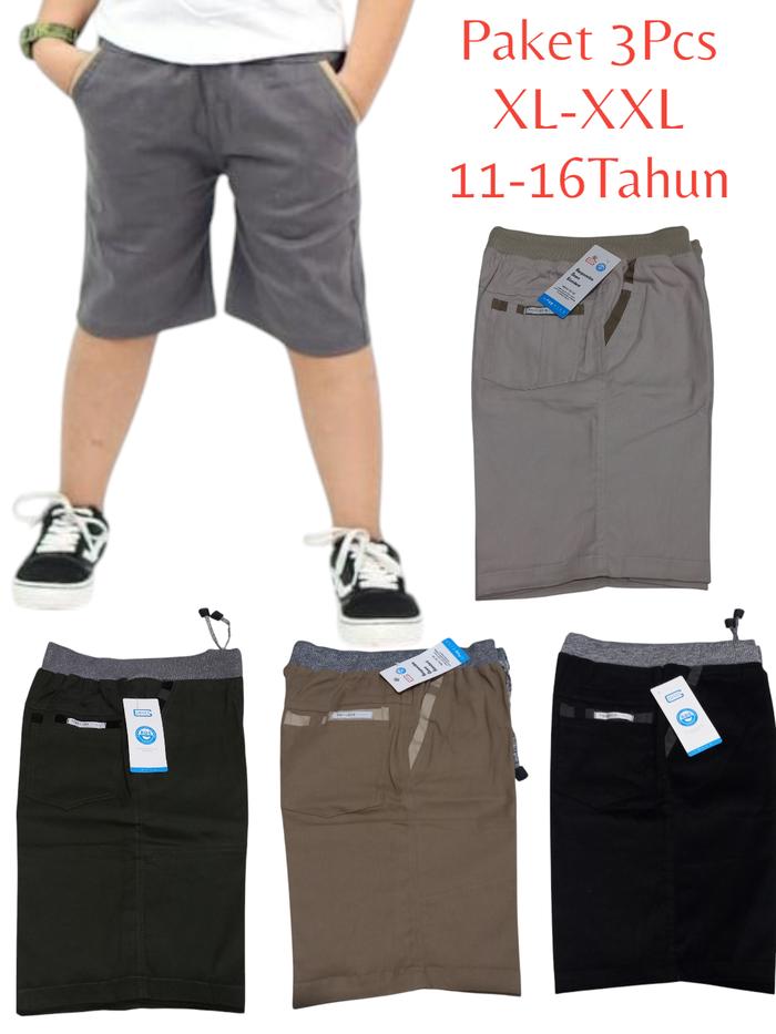 3PCS CELANA PENDEK REMAJA 11 12 13 14 15 16 TAHUN, CHINOS PENDEK ANAK COWOK FASHION, BAHAN POLOS ADEM TEBAL STRETCH - BEST SELLER - 3PCS RANDOM, XL 11-13 THN (40-45KG)