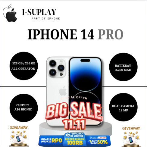 IP 14 Pro 128GB 256GB Full Set Second Inter Mulus 100 PERSEN Original