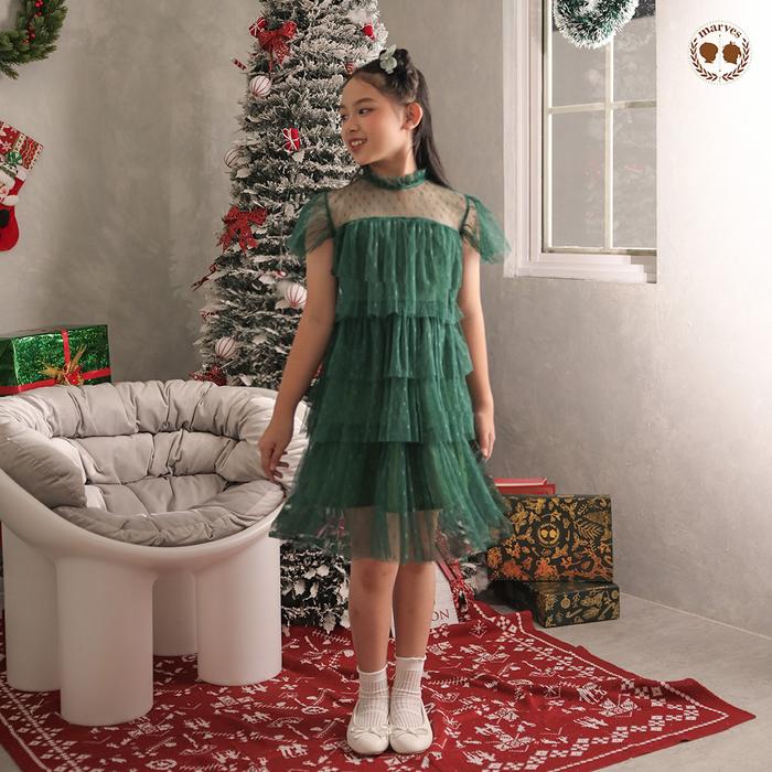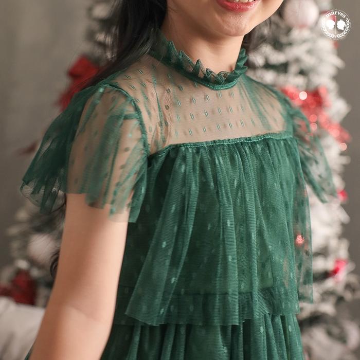 MARVES SERAPHINE DRESS BAJU NATAL ANAK PEREMPUAN BAHAN TILE FURING USIA 1 HINGGA 14 TAHUN - FOREST GREEN, 1-2 TAHUN