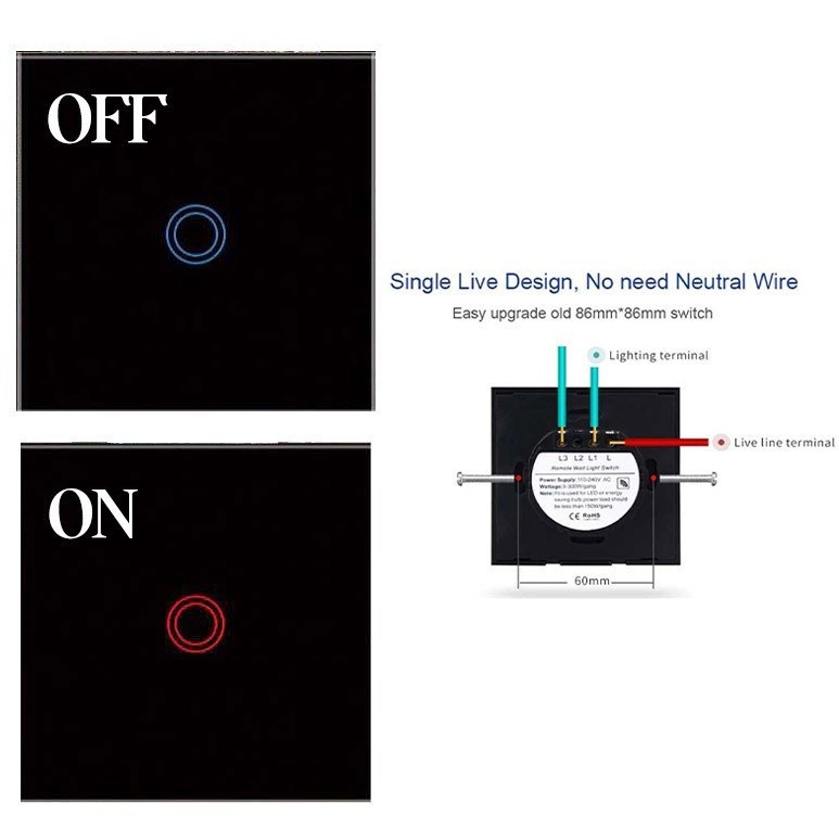 Saklar Lampu Sentuh Dinding Wall Switch Touch Sensor LED Light Panel