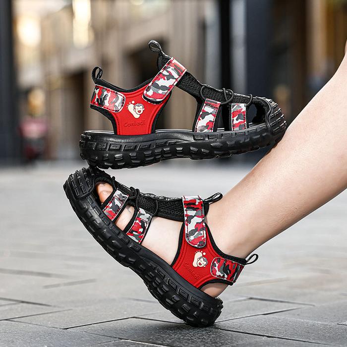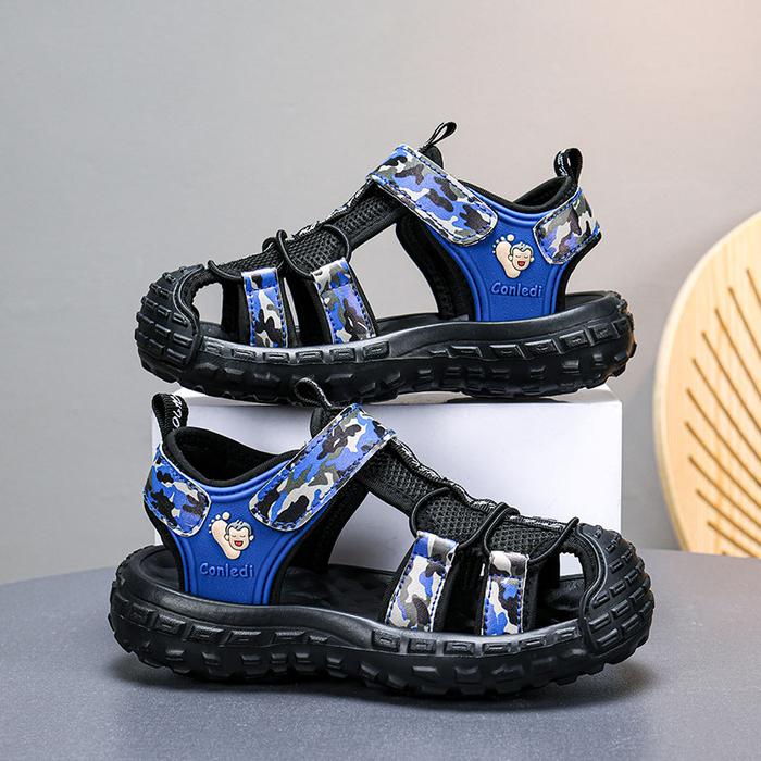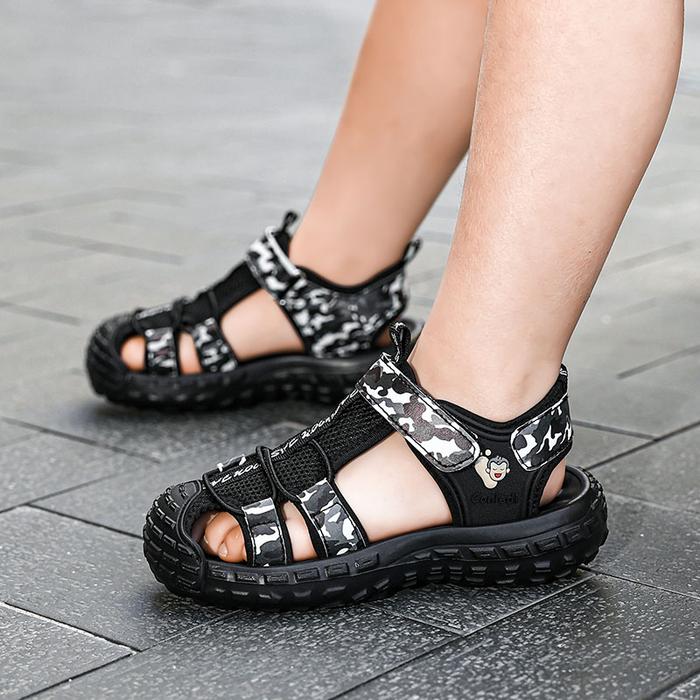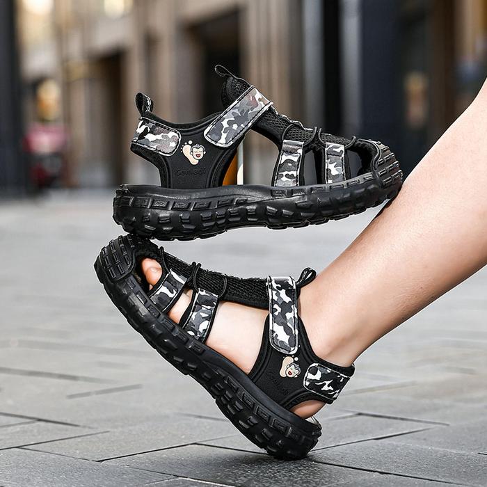 SANDAL HIKING ANAK LAKI-LAKI IMPORT 100 PERSEN ANTI SELIP NYAMAN SIZE 28-39 BERNAPAS MENYERAP KERINGAT SOL EVA VELCRO MUDAH DIGUNAKAN KAKI SEPATU FASHION - BLACK, 34/35