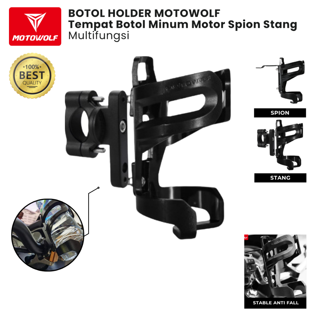 Botol Holder Motowolf Tempat Botol Minum Motor Spion Stang Multifungsi