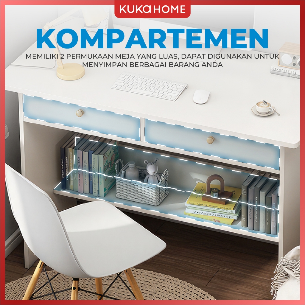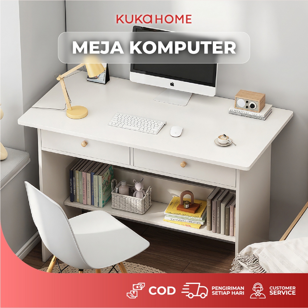 KUKAHOME Meja Komputer Kayu Meja Laptop Meja Belajar Meja Kerja Rak Buku Minimalis Serbaguna