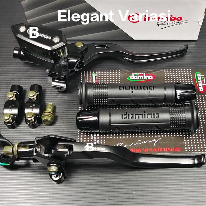 Paket Master Rem Tabung Tipe Oval Universal Motor + Handgrip Dominoo + Jalu Stang CNC - Foto - Black