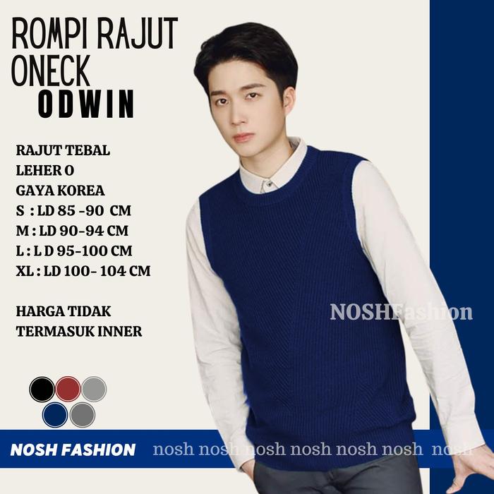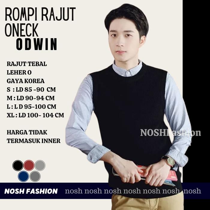 Rompi Rajut Pria Leher O Odwin / Knit Vest ONeck - NOSH - Hitam S