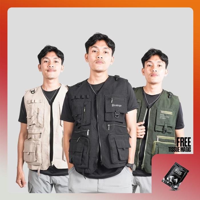 Rompi Cargo Multifungsi Tactical Outdoor Vest Pria Lapangan Motor Prodigo Gola All Varian - HITAM 1 M