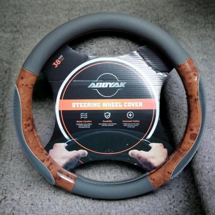sarung Setir Mobil motif kayu Sarung Kulit Stir Mobil Cover -anti slip - Abu-abu