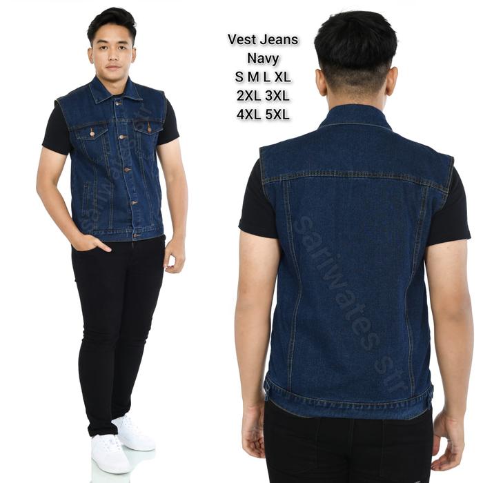 Rompi Jeans Pria Vest Denim Jaket Besar Lekbong Rompi Jumbo Navy Blue S M L XL XXL XXXL 4XL 5XL - Hitam S