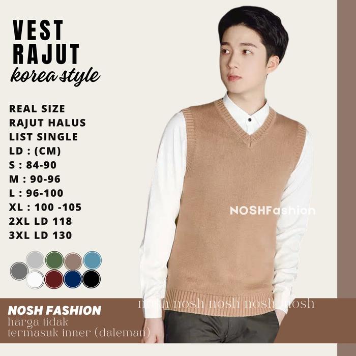 Rompi Pria Rajut Knit Vest Vneck Variasi List Ian - NOSH - Navy M