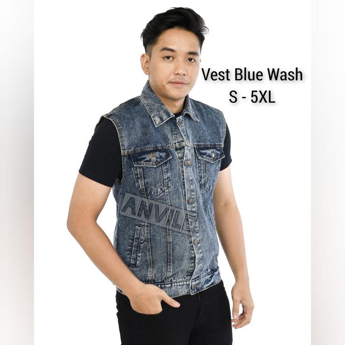 Rompi Jeans Pria Vest Denim Jaket Besar Lekbong Rompi Jumbo Grey Washed S M L XL XXL XXXL 4XL 5XL - Hitam S