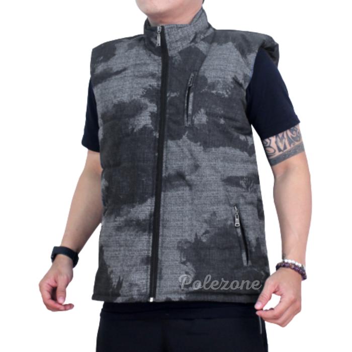 Rompi Motor Parasut Anti Angin Vest Pria Waterproof Hitam - Abu Motif L