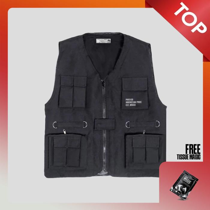 Rompi Cargo Multifungsi Tactical Outdoor Vest Motor Pria Prodigo Propos Motif 2 - M Hitam