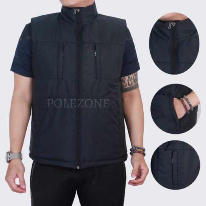 Jaket Rompi Pria Motor Anti Angin Vest Gelembung Parasut Hitam Outdoor - Navy L
