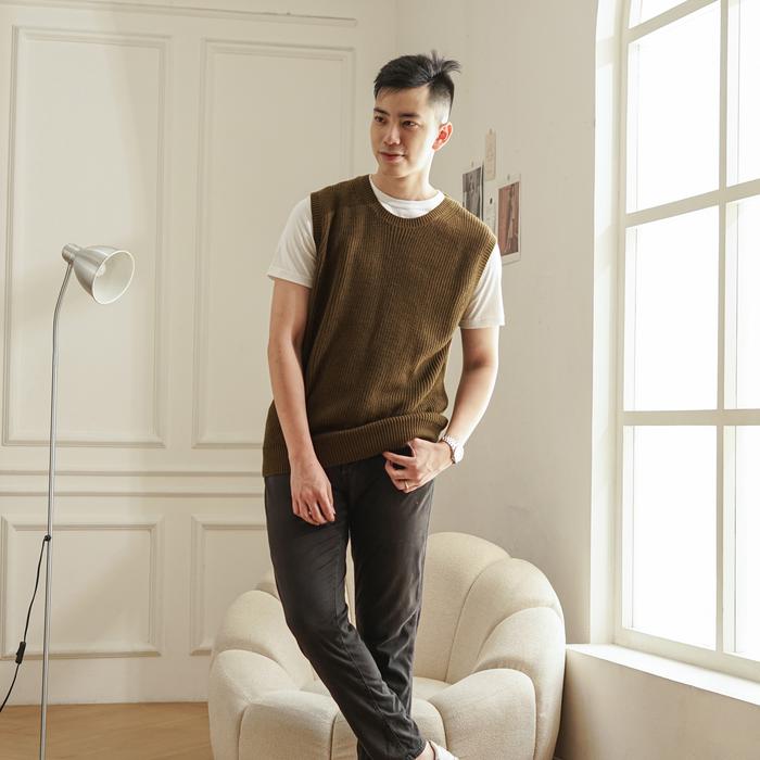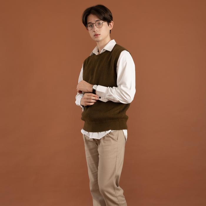 Kale Fenchy Vest Acrylic Wool Asian Fit - BROWN M
