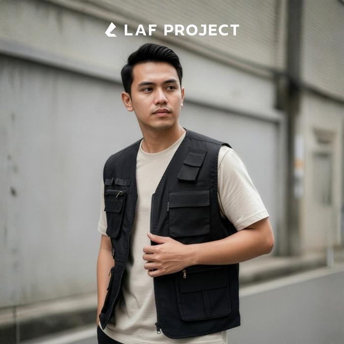 LAF Project - Rompi Vest Pria Hitam Casual Tactical Cargo Outdoor Formal - Black M