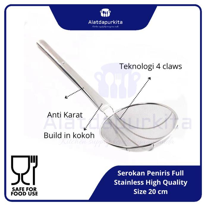 Serokan Peniris Saringan Taiwan Mie Gorengan Jumbo Dengan Gagang Bahan Stainless Steel Anti Karat Kuat - 20 cm
