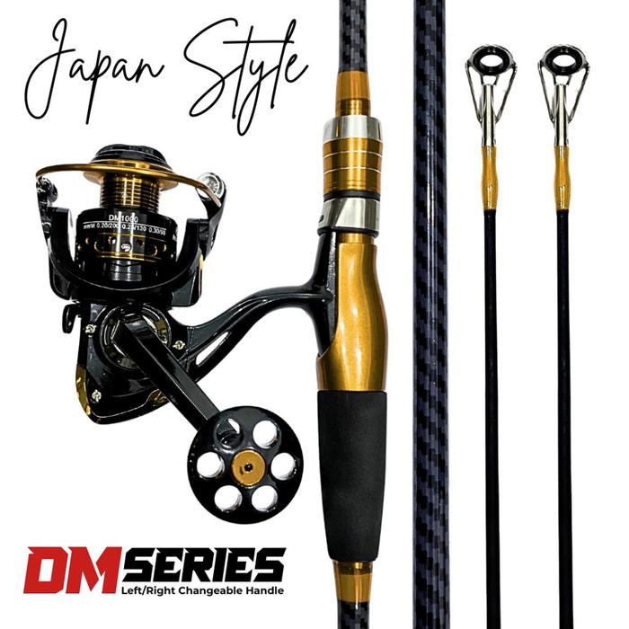 Aquapro Paket Set Joran Pancing Spinning High Carbon 2 Action dengan Reel DM Series Original Guide - Kuning 1.80M