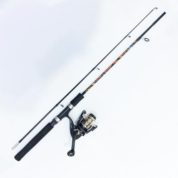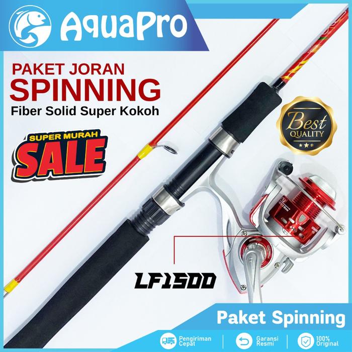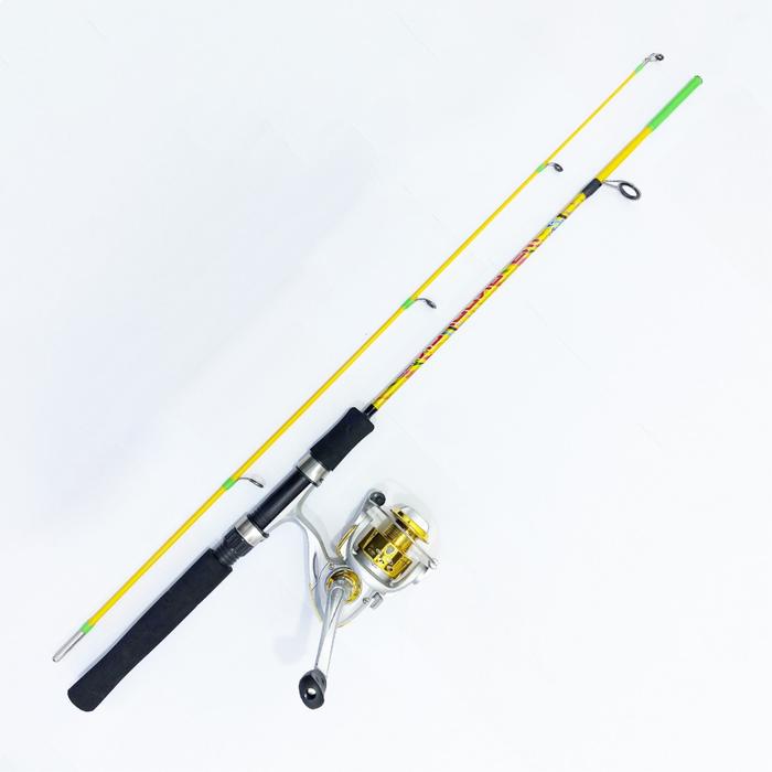 1 Set Paket Joran Pancing Spinning Fishing Rod Fiber Solid High Quality dan Reel Pancing Spinning - Kuning 1.20M