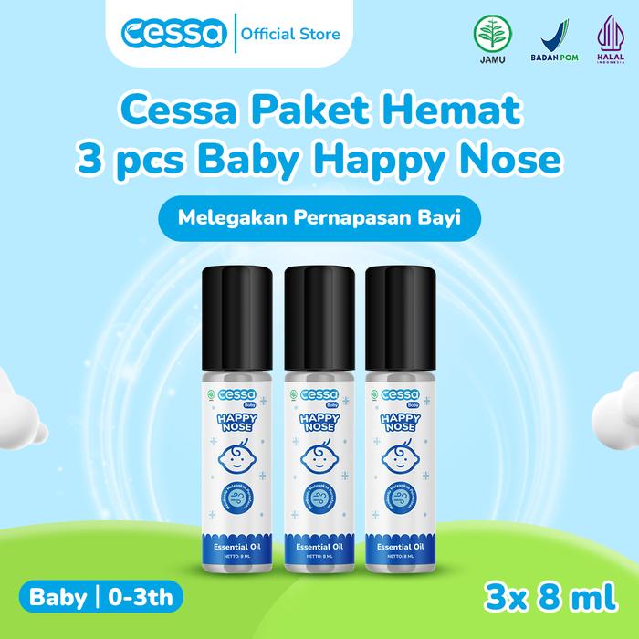 Cessa Paket 3 Pcs Happy Nose Baby 8 Ml - Natural Essential Oil Melegakan Pernapasan - Paket 3Pcs Baby Biru