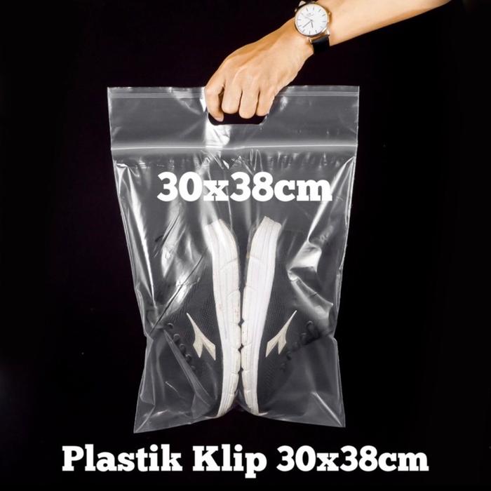 Isi 100pcs Plastik Ziplock Plastik Packing 30x38cm Plastik Zip CTIK Plastik Baju Plastik Laundry Sepatu - Hitam