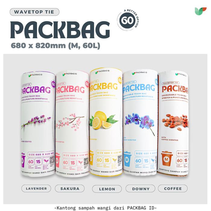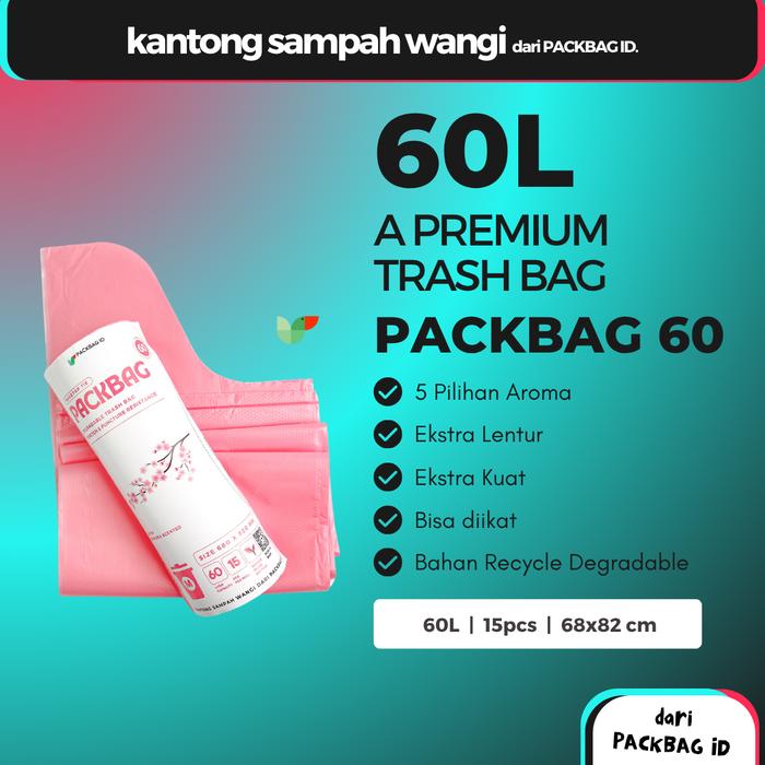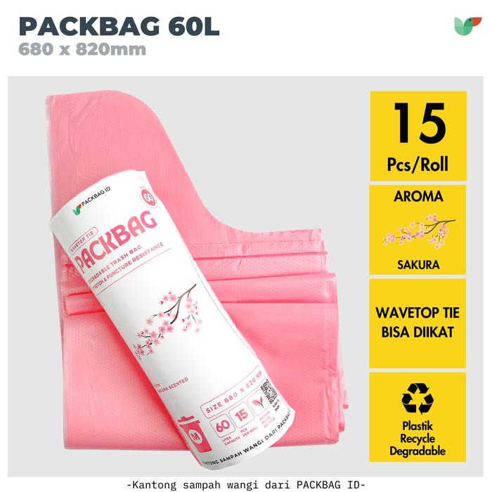Packbag ID 60L Plastik Sampah Wangi Degradable Ukuran 60L Ukuran 68x82cm 15pcs Roll - Sakura M