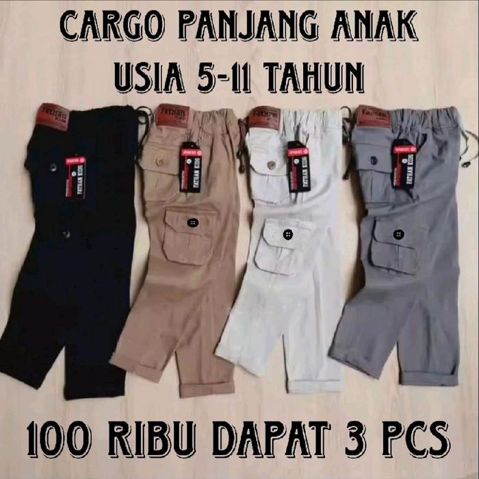 PROMO 90RB DAPAT 3 PCS CELANA PANJANG CARGO CHINO ANAK LAKI-LAKI BAHAN KATUN AMERICAN DRILL TEBAL USIA 6-11 TAHUN FASHION - 4 CELANA CARGO ANAK, M [6-7 TAHUN]