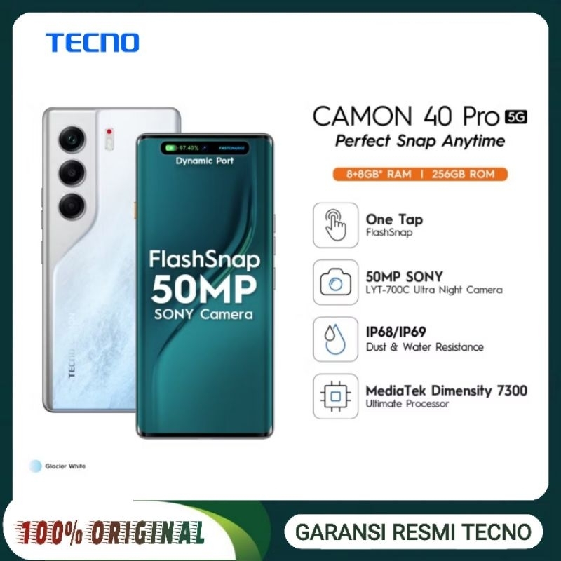 TECNO CAMON 40 Pro 5G RAM 8/256 GB GARANSI RESMI TECNO INDONESIA