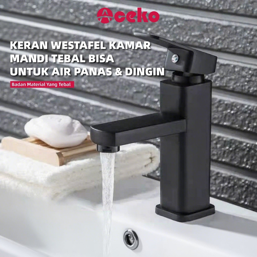 ACEKO Kran Wastafel Plastik Electroplating Hitam|Kran Air Dingin Ekonomis untuk Kamar Mandi K3011