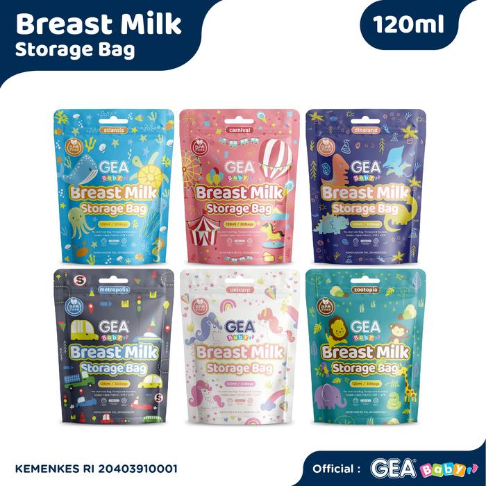 Paket PREMIUM GEA Baby Kantong Asi 120ml Pattern Edition 6 pouch Bag Penyimpanan - 6 pouch