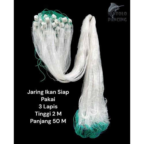 Jaring ikan siap pakai 3 lapis tinggi 2m panjang 50m jaring ikan kambangan jaring pukat jaring ikan murah