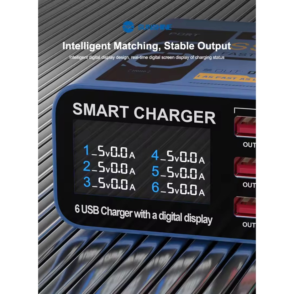 ADAPTOR CHARGER 6 PORT USB SCHEMATIC 40W QC 3.0 FAST CHARGING - SUNSHINE SS-304Q ORIGINAL
