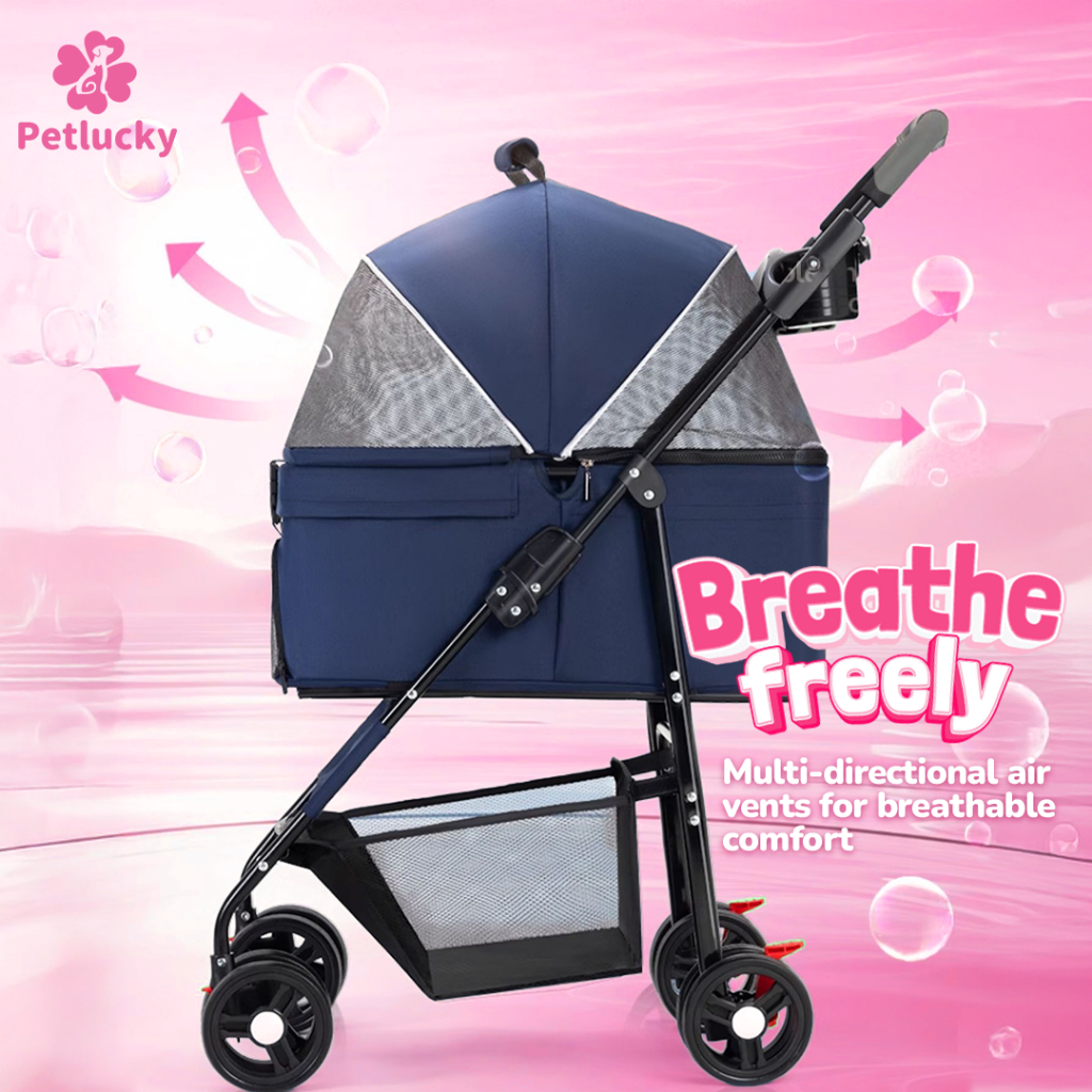 PetLucky Pet Stroller Portable 2in1 Anjing Kucing Dengan Pet Cargo Dapat Dilepas Pet Carrier Outdoor
